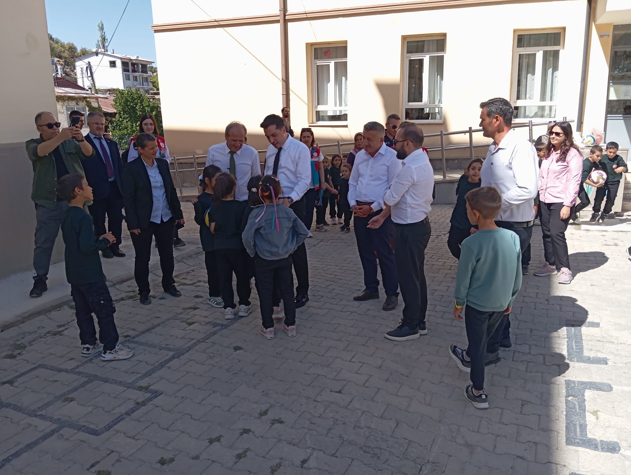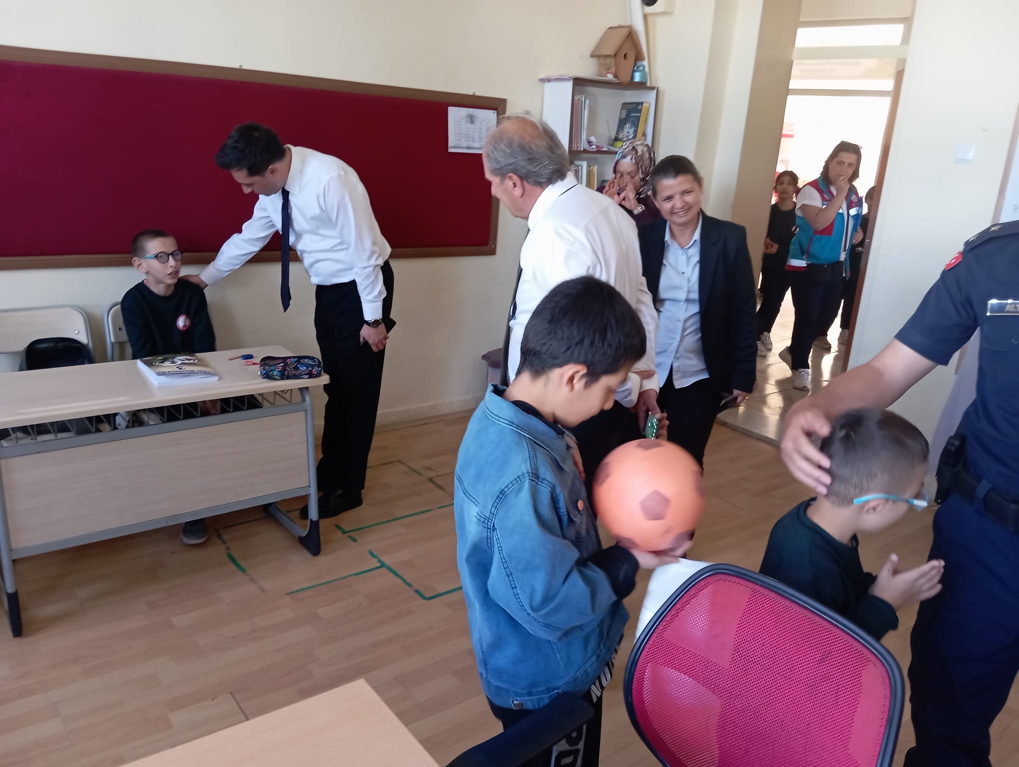 Öğrencilere top hediye eden Kaymakamımız Sayın Uğur ALMALI, öğrenciler tarafından büyük bir sevgiyle karşılandı.