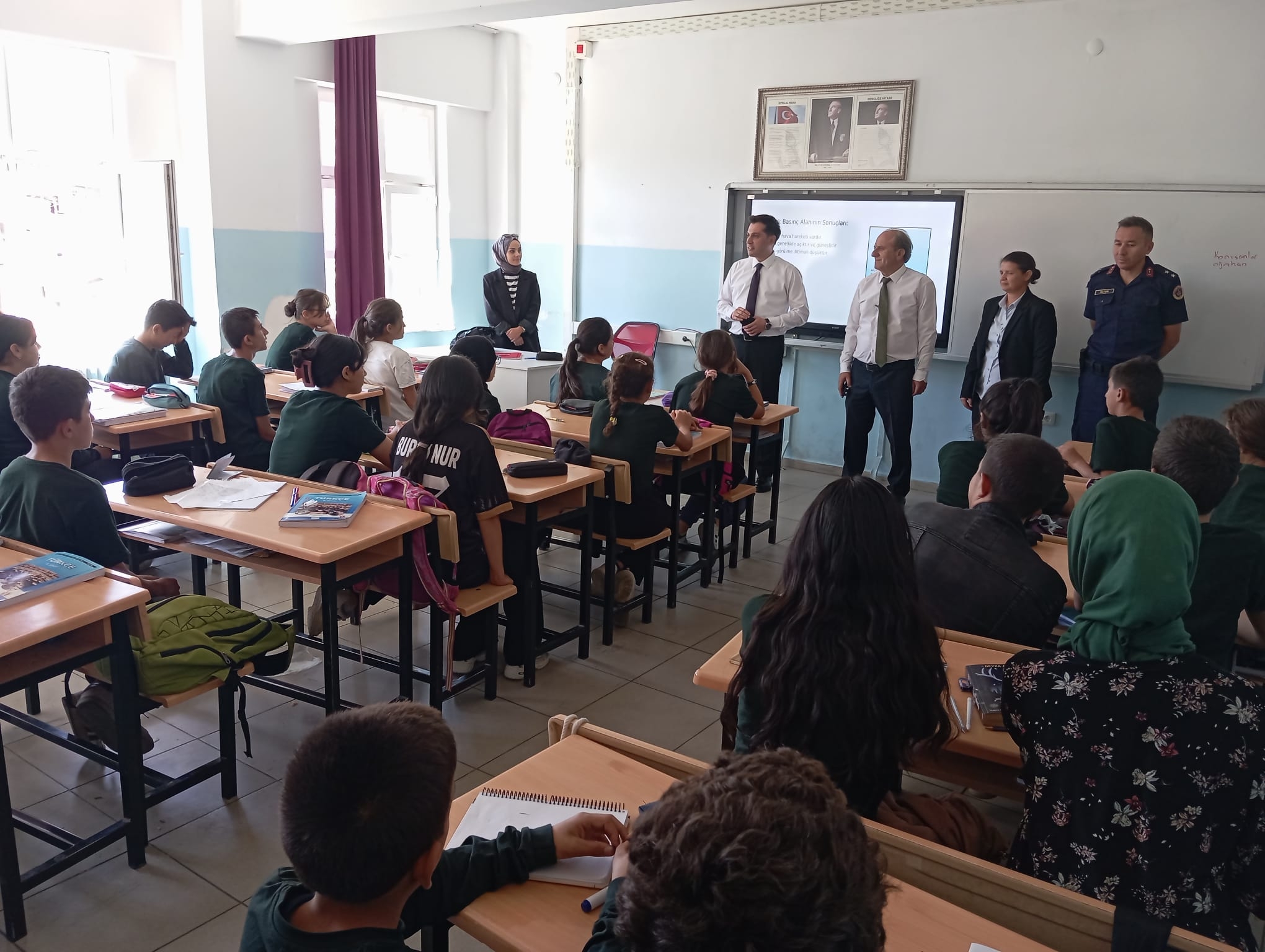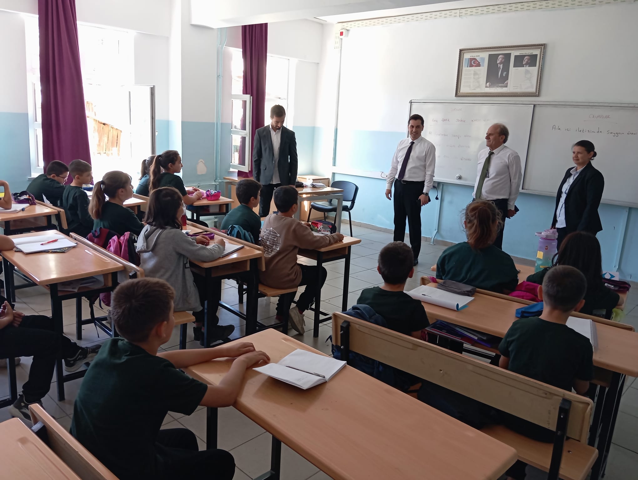 Öğretmen ve idarecilerle de görüşen Kaymakamımız devam eden eğitim öğretim süreciyle ilgili bilgiler aldı.