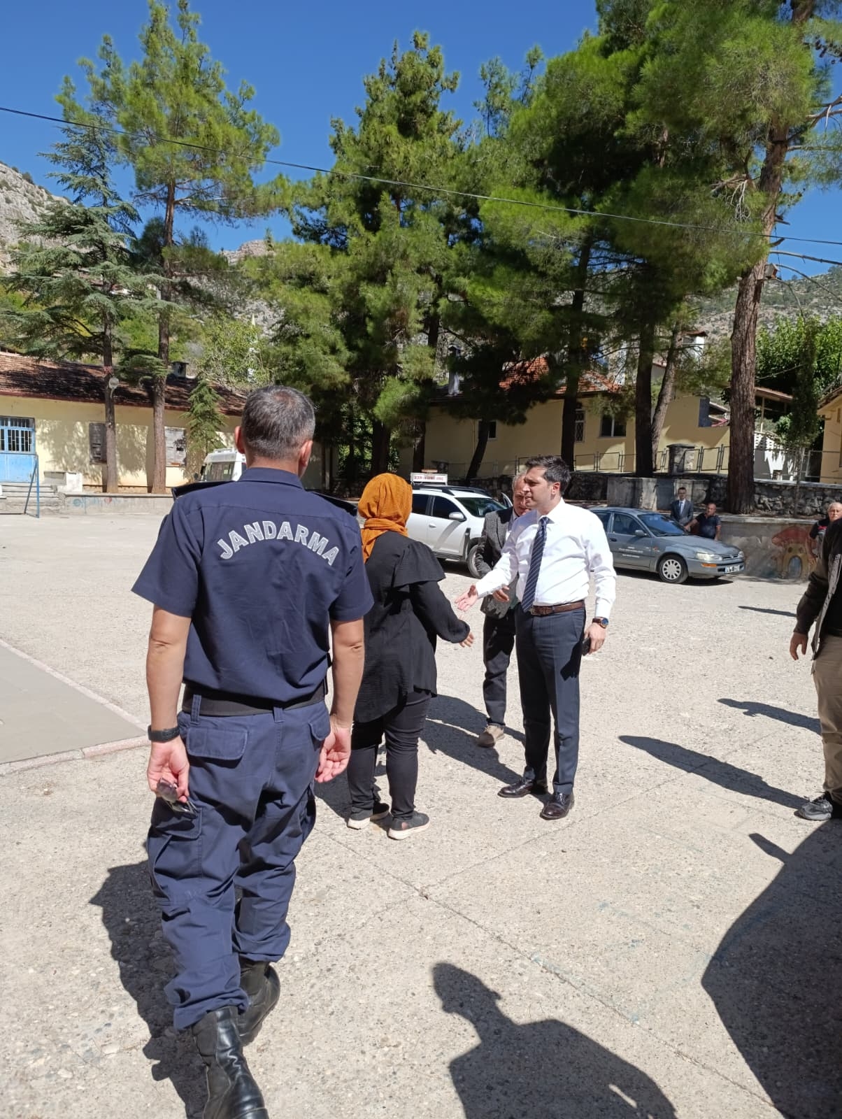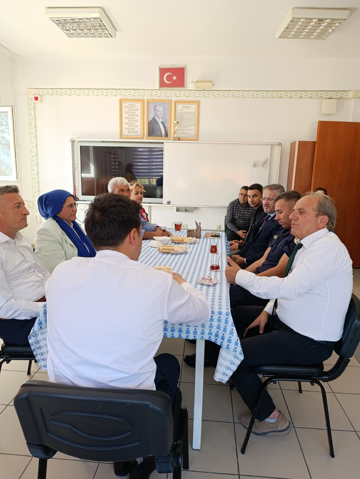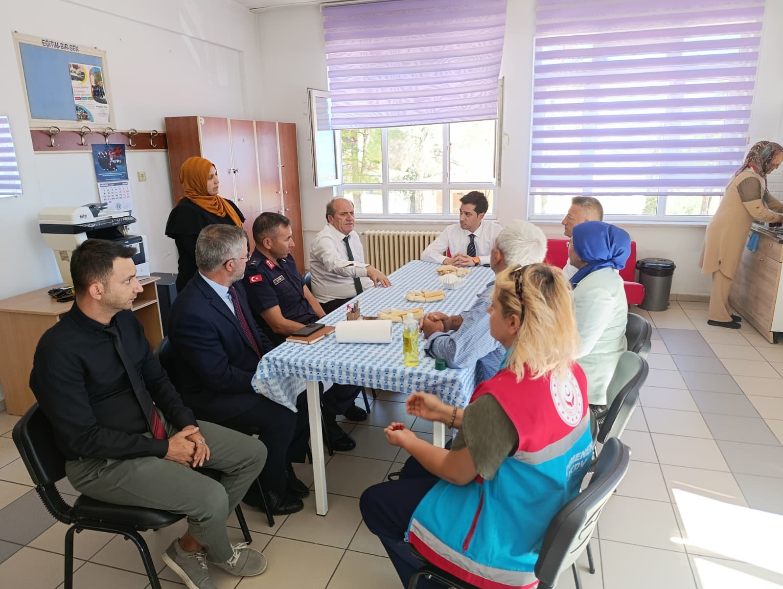 Öğretmenler ve Köy Muhtarı ile de bir araya gelen Kaymakam ALMALI, okula dair problemleri dikkatle dinledi ve çözüm önerileri hakkında İlçe Milli Eğitim Müdürümüz Mehmet ÇAĞLAYAN'la istişarelerde bulundular.