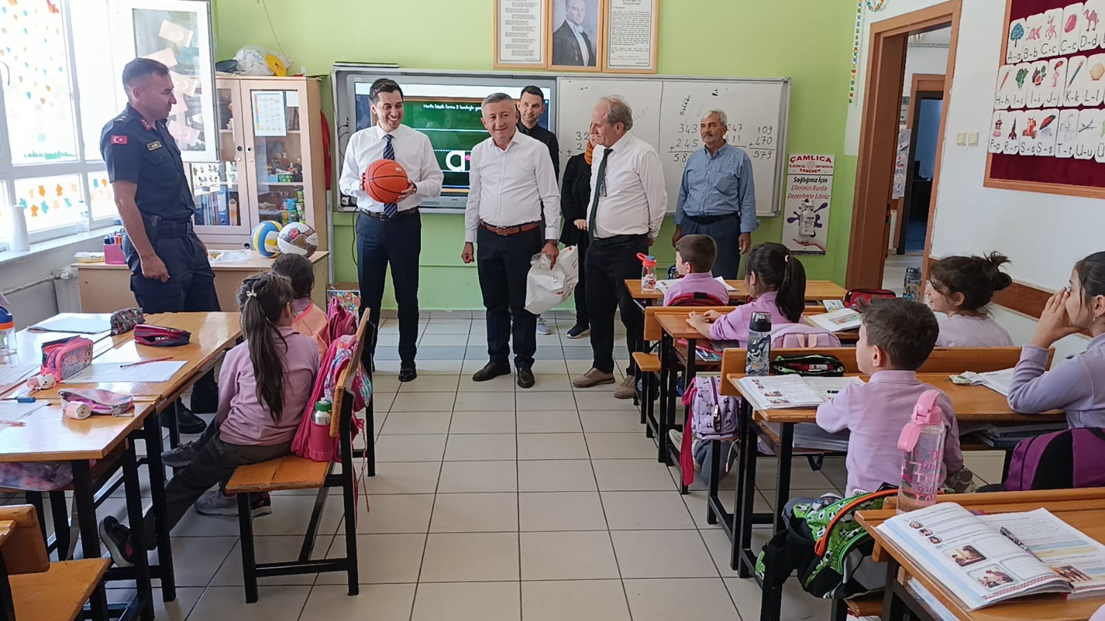 Birleştirilmiş sınıf olarak eğitim öğretim gören öğrencilerle bir araya gelen Sayın Kaymakamımız Uğur ALMALI, öğrencilerin hayallerine kulak verirken aynı zamanda onlar için getirdikleri futbol, voleybol ve basketbol topu hediyelerini çocuklarla buluşturdular.